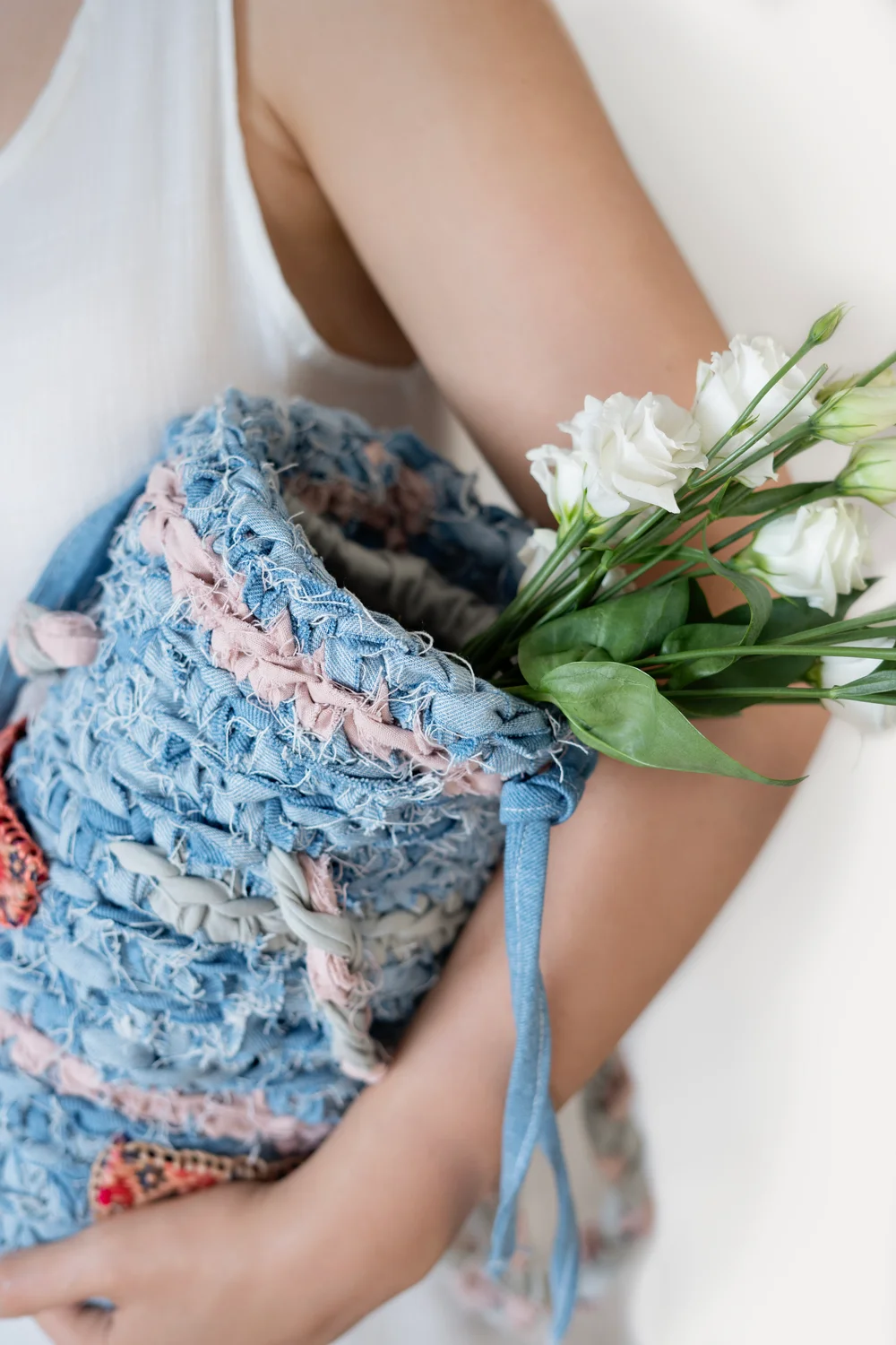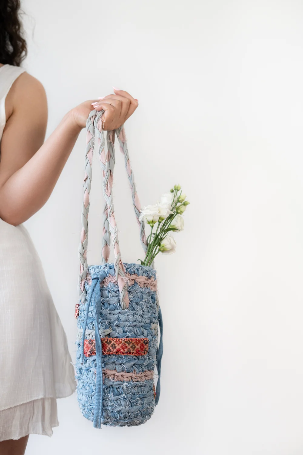 Hand-braided denim and recycled fabric + traditional handwoven kilim |